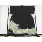 期間限定セール20%off●極上 京友禅の第一人者 松井青々 訪問着 駒刺繍 枝垂れ花 黒地 金彩 逸品 DZAA0482kh4