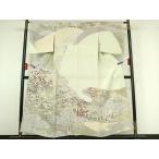 平和屋着物▽創業460年・千總 訪問着 単衣 駒刺繍 風景花文 金彩 正絹 逸品 AABF8301jh