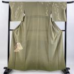 訪問着 身丈156cm 裄丈64.5cm M 袷 松竹梅 雪輪 汕頭刺繍 灰緑 正絹 逸品 中古
