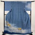 訪問着 身丈161.5cm 裄丈66cm M 袷 二代目 由水十久 落款あり 童 花びら 灰緑 正絹 逸品 中古