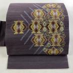 名古屋帯 美品 逸品 証紙あり 幾何学模様 アヤ乃花織 手織草木染 紫 正絹 中古