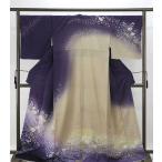 結城紬 身丈157.5cm 裄丈65cm M 袷 本場結城紬 証紙あり 灰紫 正絹 逸品 中古
