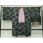 洗える着物 セット「袷着物:花紋散らし灰梅+京袋帯:黒トランプ+羽織:ばら紫色」オリジナル 着物と帯と羽織と小物の6点セット サイズS/M/L/LL(メール便不可)