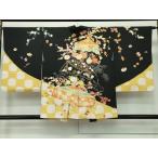 洗える着物 セット「袷着物:ストライプブーケプラム+京袋帯:黒トランプ+羽織:梅青緑」オリジナル 着物と帯と羽織と小物の6点セット (メール便不可)