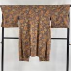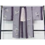 道中着 身丈105.5cm 裄丈67.5cm L 和装コート 草花 金彩 縮緬 灰紫 正絹 逸品 中古