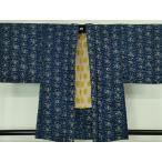 平和屋着物■極上 浦野理一 型染 羽織 紬地 草花文 留紺色地 羽織紐付き 逸品 DZAA8448kh5