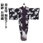 春夏用 紋紗 和装コート 長羽織 正絹 黒 葡萄 ki29309 新品 夏コート はおり Lサイズ レディース シルク ギフト 盛夏 単衣 送料込み