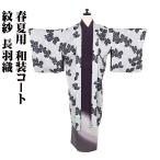 春夏用 紋紗 和装コート 長羽織 正絹 白 薄緑 黒 葉柄 ki29310 新品 夏コート Lサイズ レディース シルク ギフト 盛夏 単衣 送料込み