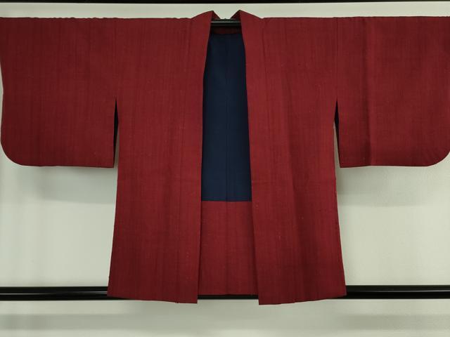 平和屋本店∞極上 浦野理一 経節紬 羽織 色無地 真紅色 羽織紐付き 逸品 DZAB4448kh6