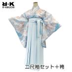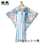 京都室町st. 卒業式 袴 セット レディース R・K ブランド 二尺袖着物(フリーサイズ) 無地袴 5点セット「水色系、牡丹と貝桶」RKSTGd920br