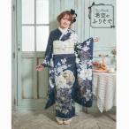 未仕立て 振袖 22点セット「OLD&NEW 振袖仮絵羽 牡丹ブーケ/紺」仮絵羽 振り袖 正絹 着物 ブランド振袖 成人式 結婚式 結納 パーティー(メール便不可)