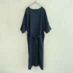 ハンドルーム HAND ROOM *リネンヘリンボーンワンピース*SネイビーVネック腰紐付きシンプルスモックドレス(2-2505-580)【12F52】