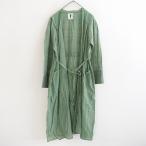 オソデ OSODE *コットンローブ*綿ガーゼストライプ柄グリーン×薄紫ドローストリング腰紐羽織り長袖(84-2505-100)【91F52】