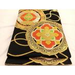 平和屋着物◎六通柄袋帯 唐織 正倉院花文 黒地 金糸 正絹 逸品 CABC4834in