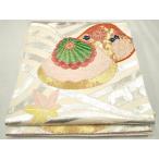 平和屋着物●現代アンティーク 貝島はるみ 綺麗伝説 六通柄袋帯 唐織 扇面花文 金糸 正絹 逸品 DABB4544ps