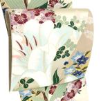 袋帯 織楽浅野 正絹 西陣織 特選 創作袋帯 花文 ふくれ織 生成り×グレージュ 二色 セミフォーマル お洒落