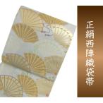 袋帯 お仕立て付 薄グレーホワイト地 吉祥扇集文【HZ】(mw-a)