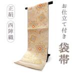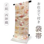 袋帯 正絹 西陣織 ベージュ ゴールド 華紋 唐草 六通柄 お仕立て付き フォーマル 礼装 訪問着 色無地 留袖 結婚式 卒業式 茶会 レディース