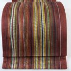 袋帯 秀品 縞 茶色 全通 正絹 中古