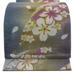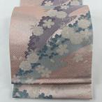 袋帯 秀品 桜 流水 銀糸 箔 薄ピンク 六通 正絹 中古