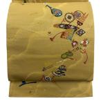 袋帯 秀品 和楽器 鳥兜 金糸 刺繍 黄土色 六通 正絹 中古