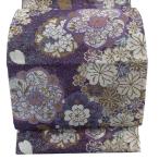 袋帯 秀品 草花 桜 金糸 箔 紫 六通 正絹 中古