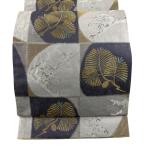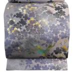 袋帯 秀品 草花 幾何学模様 灰色 全通 正絹 中古