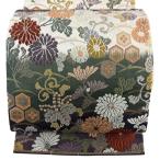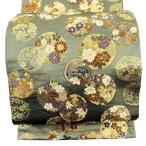 袋帯 秀品 箔 灰緑 全通 正絹 中古