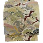 袋帯 秀品 鶴 松 金糸 箔 ベージュ 六通 正絹 中古