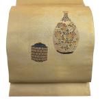 袋帯 秀品 松尾光琳 落款あり 草花 陶器 箔 金色 お太鼓柄 正絹 中古