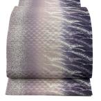 袋帯 秀品 波頭 斜縞 金銀糸 箔 濃紫 六通 正絹 中古