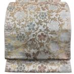 袋帯 秀品 花唐草 箔 ベージュ 六通 正絹 中古