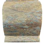 袋帯 秀品 花唐草 縞 箔 唐織 灰緑 六通 正絹 中古