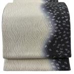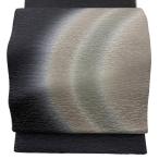 袋帯 秀品 幾何学 ぼかし 銀糸 墨色 お太鼓柄 正絹 中古