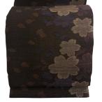 袋帯 秀品 羽衣伝説 桜尽くし文 焦茶色 全通 正絹 中古