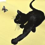 帯 京袋帯 正絹 お仕立て上り 名古屋帯 黒 猫 イエローアイズ 黒豹 ヒョウ レオパード 猫 市松 普段 お洒落 小紋 紬 カジュアル うれしづくし