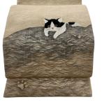 美品 袋帯 逸品 夏帯 猫 薄茶色 お太鼓柄 正絹 中古