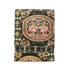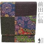 袋帯 前田仁仙 全通 正絹 京摺り友禅 手染め 黒地 変わり市松 花更紗 動物 鳥 華文 金通し 金彩加工 新古品 仕立て上がり みやがわ sb55299