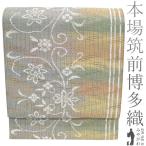袋帯 未使用 本場筑前博多織 正絹 伝統工芸士 黒木政幸 全通 泥染 柿渋染 グレー 花唐草 カジュアル 新古品 仕立て上がり みやがわ sb54674