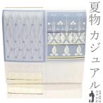 京袋帯 夏 夏帯 麻 ブルー 紺 水色 猫 ビアガーデン WAKKA 近江の麻 仕立て上がり 名古屋帯