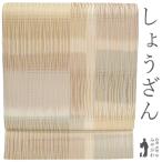 袋帯 京都 西陣 しょうざん 正絹 すくい織 ベージュ 淡茶 薄ブルーグレー 変わり市松 カジュアル 中古 仕立て上がり みやがわ sb55279
