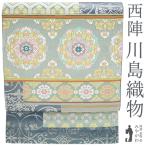 袋帯 お仕立て付き 西陣織 正絹 いづくら 準礼装用 六通柄 御皇室秘蔵絹 小石丸 立雪輪菊花文 明灰色/薄クリーム色【レディース着物/和服/結婚式/入卒式/パ−ティ−/お子様の付き添い】送料込み