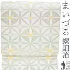 袋帯 未使用 フォーマル 正絹 京都 西陣 まいづる 螺鈿箔 金銀糸 白銀地 王宮菱華文 春 秋 冬 新古品 仕立て上がり みやがわ sb55320