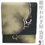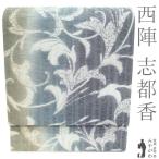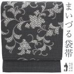 袋帯 西陣 まいづる 正絹 銀糸 銀通し 黒グレー 洋花唐草 フォーマル 春 秋 冬 京都 リサイクル 中古 仕立て上がり みやがわ sb55349