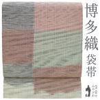 袋帯 本場筑前博多織 正絹 草木泥染 波筬紙布 紬遊 本場大島紬向き 変わり市松 カジュアル 未使用 新古品 仕立て上がり みやがわ sb55350