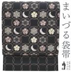 袋帯 西陣 まいづる 正絹 いわれ帯 銀糸 黒グレー地 輪繋ぎ 月 雪の結晶 セミフォーマル リサイクル 中古 仕立て上がり みやがわ sb55371