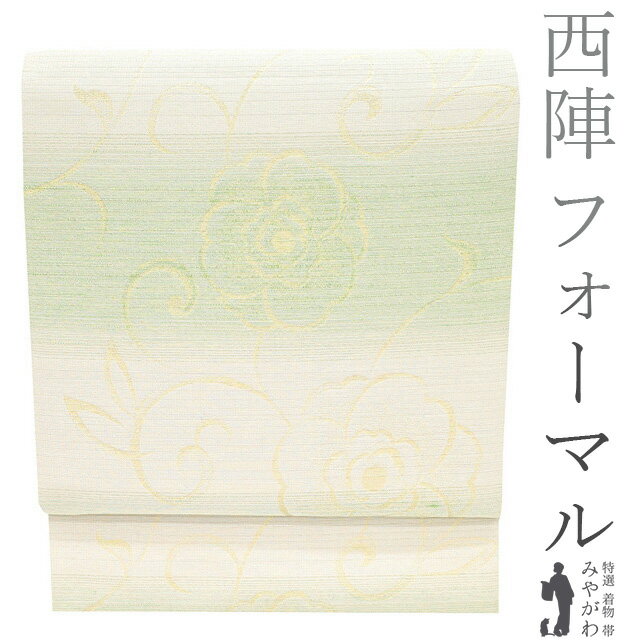 袋帯 フォーマル 留袖 訪問着 < アイボリー グリーン /七宝・丸文並べ> 西陣織 絹 <佐々木染織物> 仕立て上がり 銀 青 【帯 留袖 訪問着 付け下げ 結婚式 茶席 礼装用 準礼装 和装 フォーマル 通販 購入 おび obi】