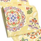 (Prices down4)振袖 袋帯「淡黄色 唐花、華文」 未仕立て 西陣織 京都西陣 正絹帯<T>of★55%OFF