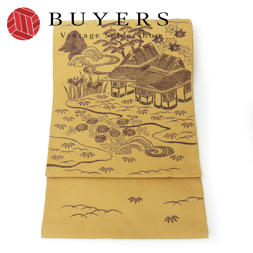 【20%OFF!!楽天スーパーSALE!!】【中古】 袋帯 未使用保管品 正絹(金銀糸除く) ベージュ イエロー 勝山織物 洒落 和装 呉服 和服 きもの レディース 女性