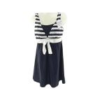 レディース水着 2点セット カバーアップ 補正 パワーネット フレンチ袖 9号 M ボーダー柄 ネイビー